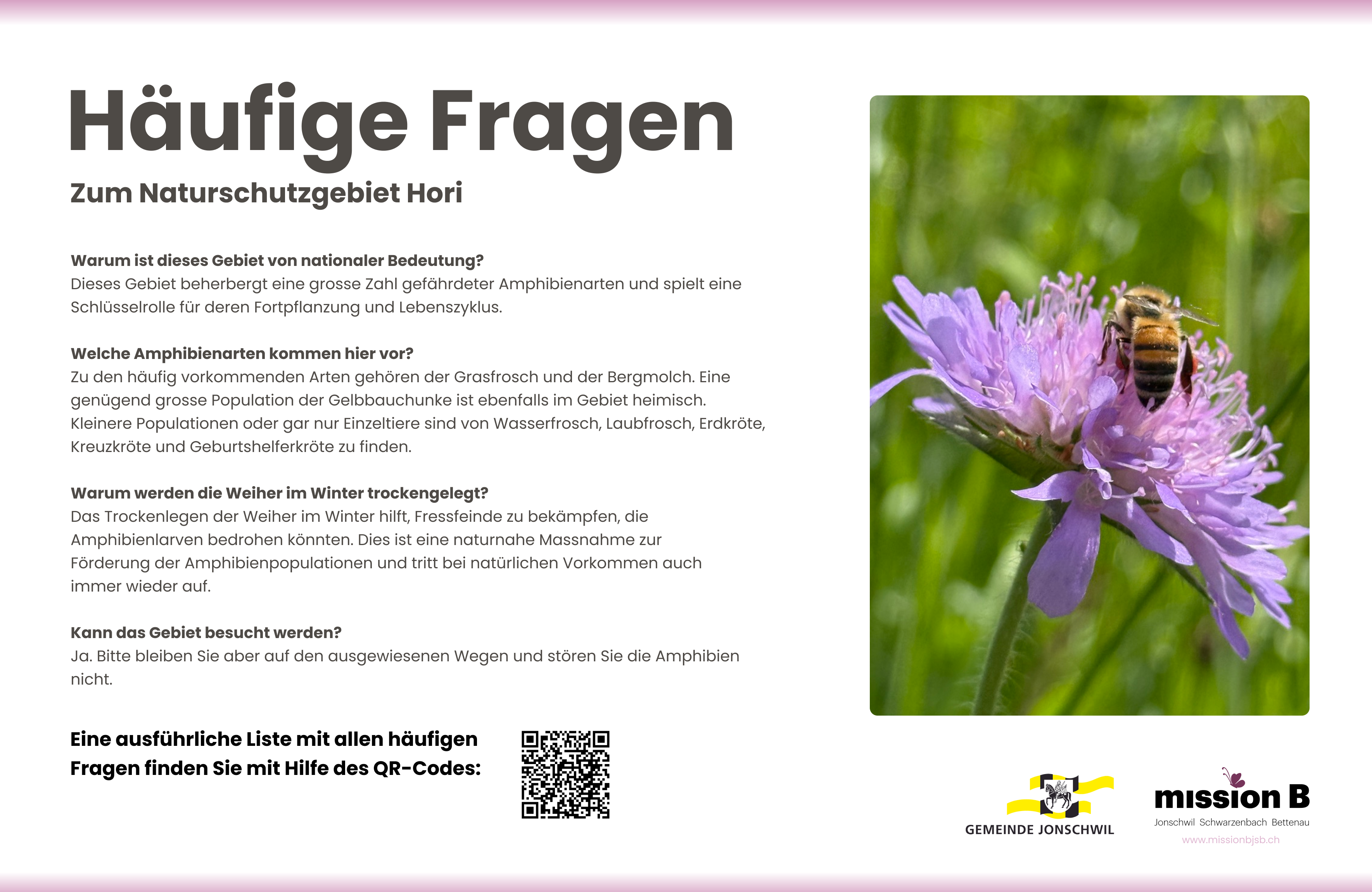 Das Naturschutzgebiet Hori in Jonschwil ist ein wertvolles ökologisches Gebiet mit einer vielfältigen Flora und Fauna. Es dient als Lebensraum für zahlreiche Tier- und Pflanzenarten und trägt zur Erhaltung der regionalen Biodiversität bei. Die Hori ist ein Rückzugsort für seltene Vogelarten, Amphibien und Insekten und wird entsprechend gepflegt und geschützt. Besucher können die Natur auf ausgewiesenen Wegen erleben, ohne die sensible Umwelt zu beeinträchtigen. Das Gebiet ist ein wichtiger Bestandteil des Landschaftsschutzes in der Gemeinde Jonschwil.